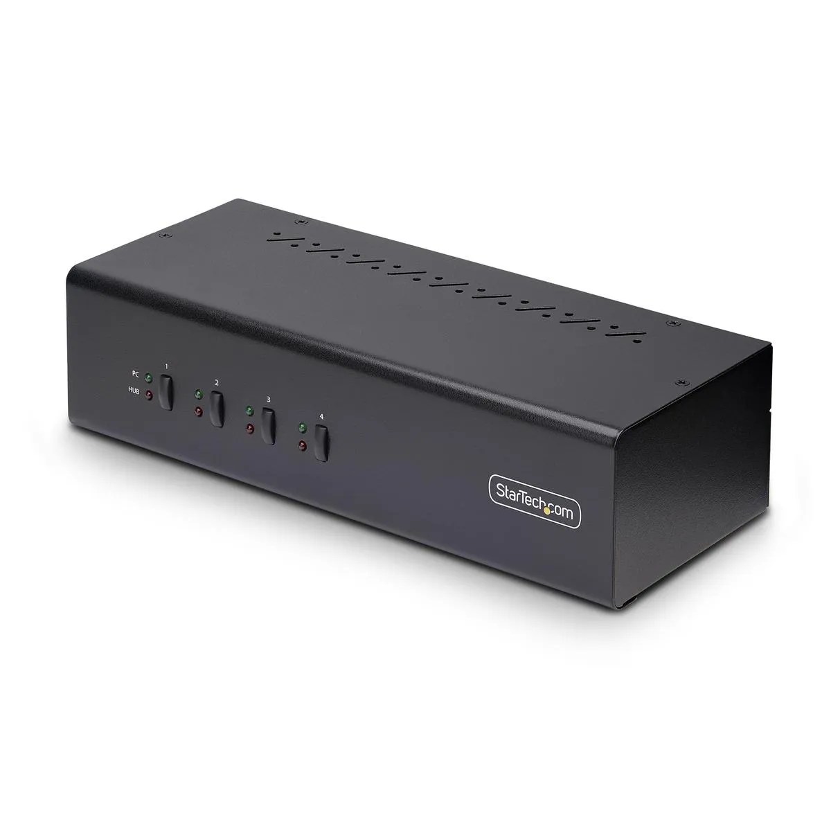 StarTech.com 4-Port Dual-Monitor DisplayPort KVM Switch, 4K 60Hz, 2x USB 5Gbps Hub Ports, 2x USB 2.0 HID Ports, Hotkey and Push-Button Switching, TAA Compliant - 3.5mm Audio, HDCP (P4DD46A2-KVM-SWITCH) - KVM / audio switch - 4 ports - TAA Compliant