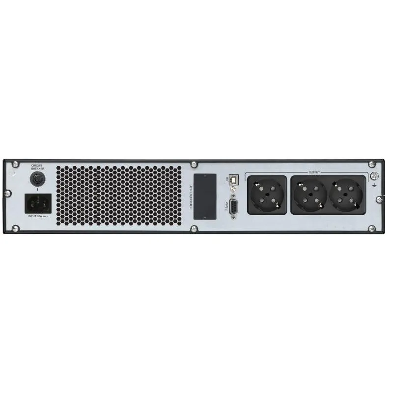 FSP Champ Rack 1K. Topologie UPS: Double-conversion (en ligne), capacité de la puissance de sortie: 1 kVA, Puissance de sortie: 900 W. Types de sortie AC: Type F, Nombre de prises en sortie: 3 sortie(s) CA, Type de port USB: USB Type-B. Capacité de la batterie: 9 Ah, Tension des piles: 12 V, Durée de rechargement de la batterie (90 %): 4 h. Format: A mettre sur rack, Couleur du produit: Noir, Capacité du rack: 2U. Certificats de conformité: CE